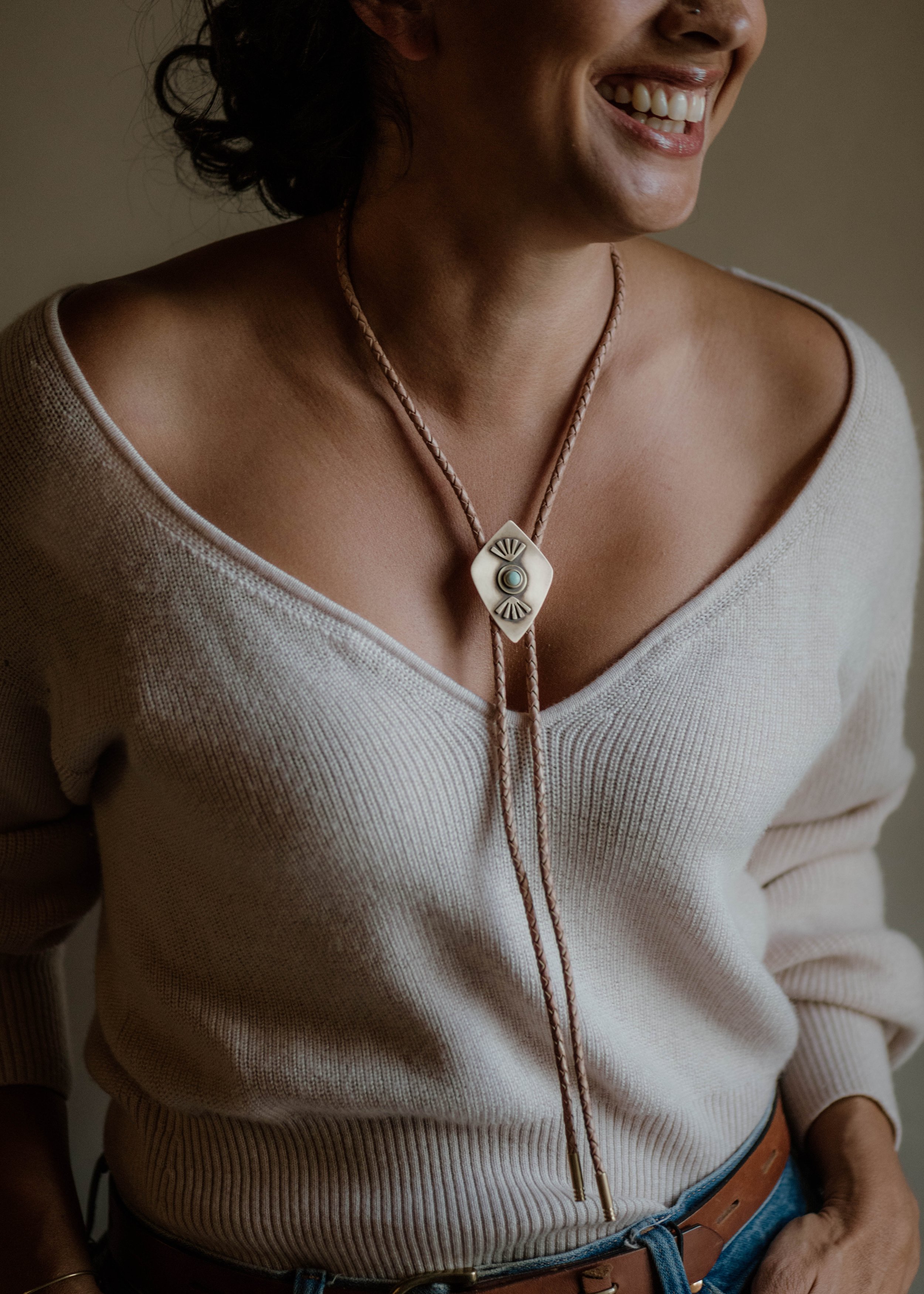 Our bolo ties are designed for all, and handcrafted in Montana. We love a bolo for its gender-neutral addition to any outfit. With a nod to tradition, our bolo ties are made with leather cord that is held together with our unique metal medallions.
