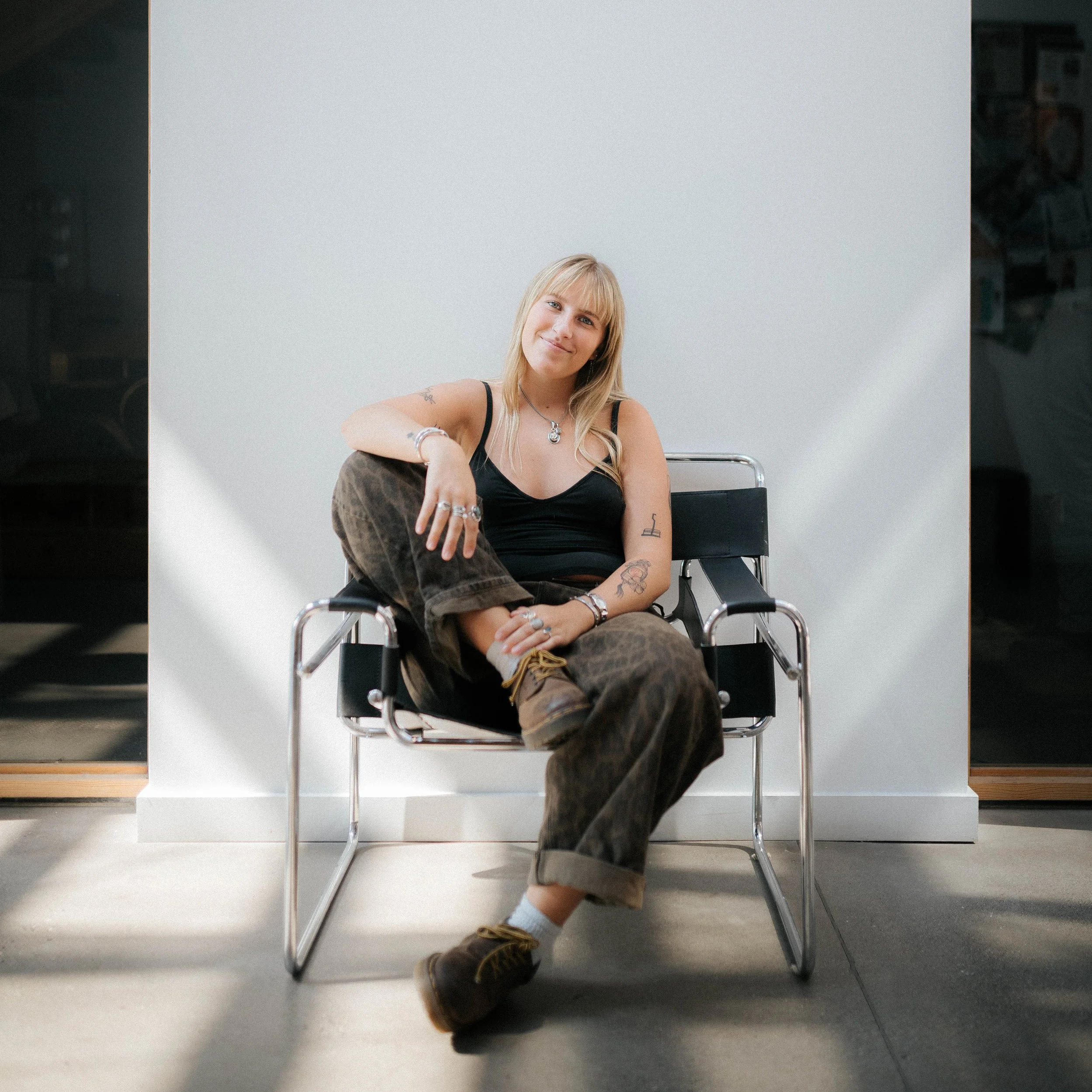 Production Technician + Retail AssociateOriginally from Maine, Sasha is in her final year of graphic design school at MSU, and joined the Commonform team in September of 2024. With a sharp eye for all types of design, a unique personal style, and an upbeat, spunky attitude, she brings her infectious energy to the studio every day. Whether she’s soldering at the workbench or chatting with customers in the showroom, Sasha’s attention to detail and strong work ethic make her an essential part of the team. Outside of work and school, she’s an avid skier, wakesurfer, and continues to develop her own graphic design skills through personal and professional projects. We’re beyond grateful to have her creativity and dedication on board!